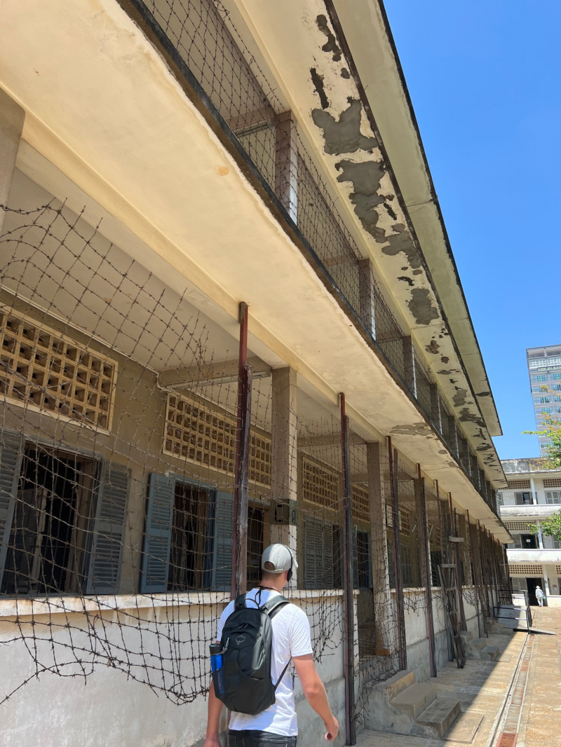 Phnom Penh is een typische Aziatische hoofdstad en zeker niet onze favoriete stad van dit continent. Phnom Penh schreeuwt chaos: het is er enorm druk, iedereen en alles rijdt en loopt door elkaar, de stad staat bekend als wat onveilig vanwege de vele zakkenrollers en je moet best een beetje zoeken om leuke eetplekjes te vinden. Maaaar de meeste mensen komen hier voor twee dingen: een bezoek aan de S-21 gevangenis en de Killing Fields en dat deden wij ook! We zijn omver geblazen door de verschrikkelijke geschiedenis van Cambodja onder leiding van Pol Pot. Miljoenen mensen zijn hier 45 jaar op gruwelijke wijze gemarteld en vermoord. Wat mij betreft hoort een bezoek aan deze twee locaties er 100% bij tijdens jouw reis door Cambodja. Een aanrader is wel om de audiotour te volgen (ook in het NL beschikbaar) want op deze manier kom je zo veel meer te weten over deze zwarte bladzijde van het land en wat voor invloed dit nog steeds heeft op de bevolking. Wanneer je de gevangenis en Killing Fields bezoekt zal je een emotionele dag tegemoet gaan maar het heeft ons nog meer doen beseffen dat het leven gevierd moet worden!