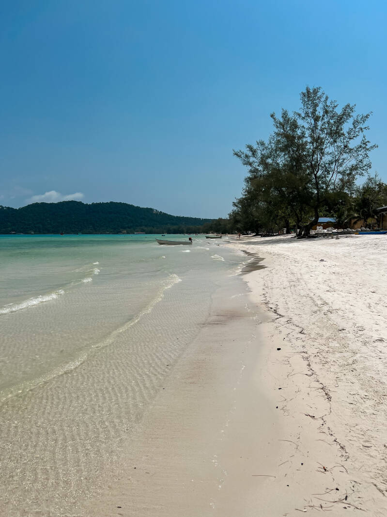 Droom jij van witte bountystranden en een azuurblauwe zee weg van de bewoonde wereld? Plan dan zeker een paar nachten op het prachtige eiland Koh Rong Sanloem of het grotere naastgelegen eiland Koh Rong. Wij hadden drie nachten geboekt op dit eiland maar zijn uiteindelijk een week gebleven omdat het zo een paradijsje was. Ik heb nog nooit zulk wit en fijn zand gezien en de sfeer op dit eiland is relaxter dan relaxt.